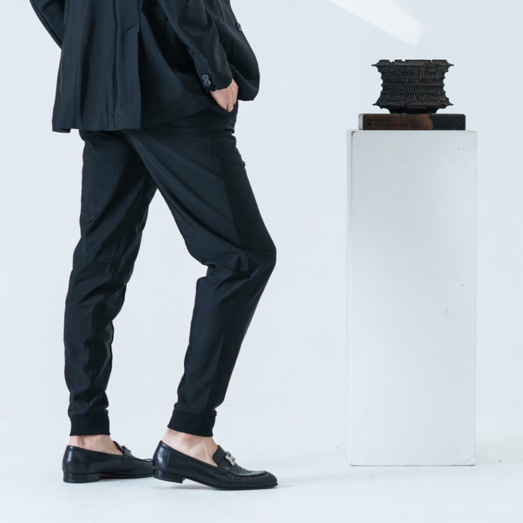 ストレッチ性の高さにより実現できた風格を損なわず、スタイリッシュに決まるラグジュアリーシルエットが特徴のアイテム。