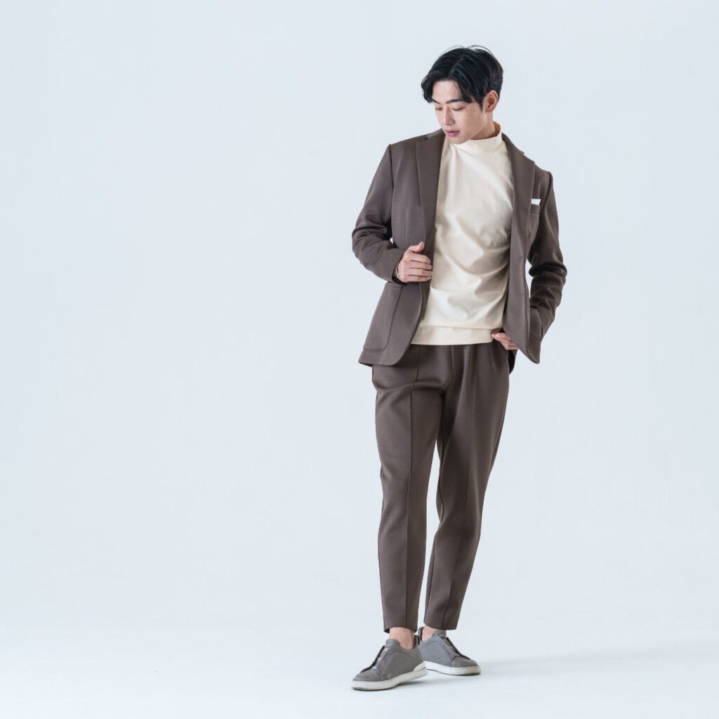 品格漂う適度な光沢と毛玉知らずの新素材、身体に沿うように計算された美しいシルエットが生み出す洗練されたスタイル、それでいてご家庭での洗濯も可能な機能性も充実。