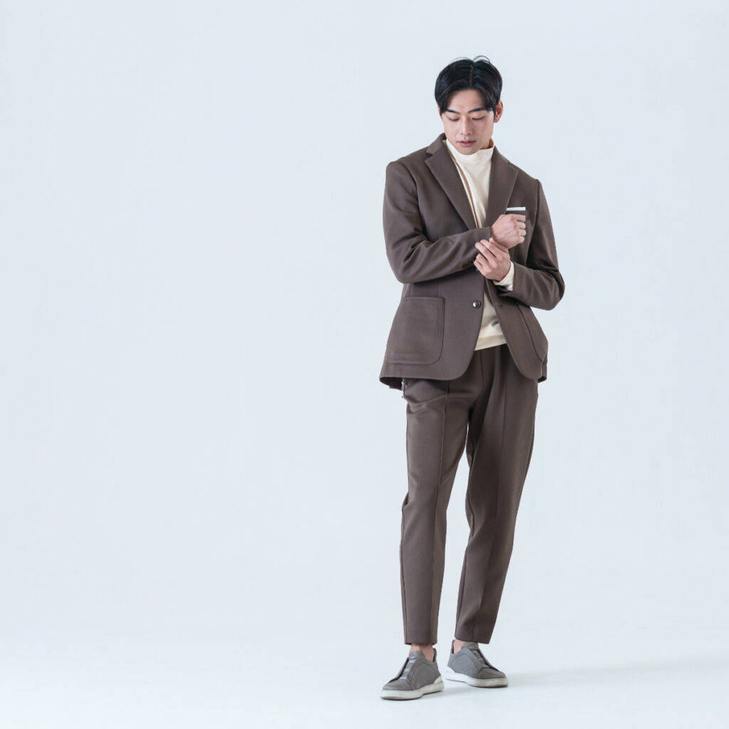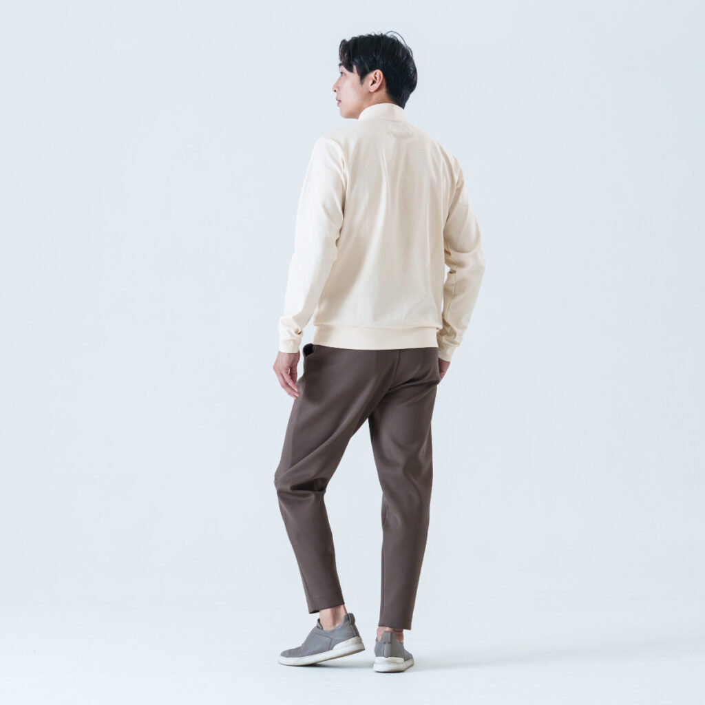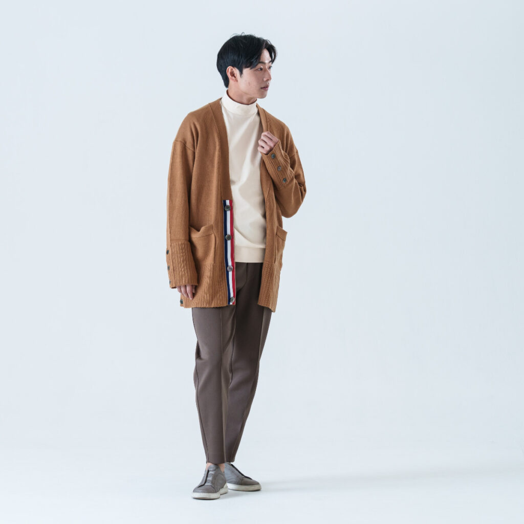 ゆったりとした身幅に対して細めの袖幅が自然に体型をサポートしすっきりとしたシルエットに。