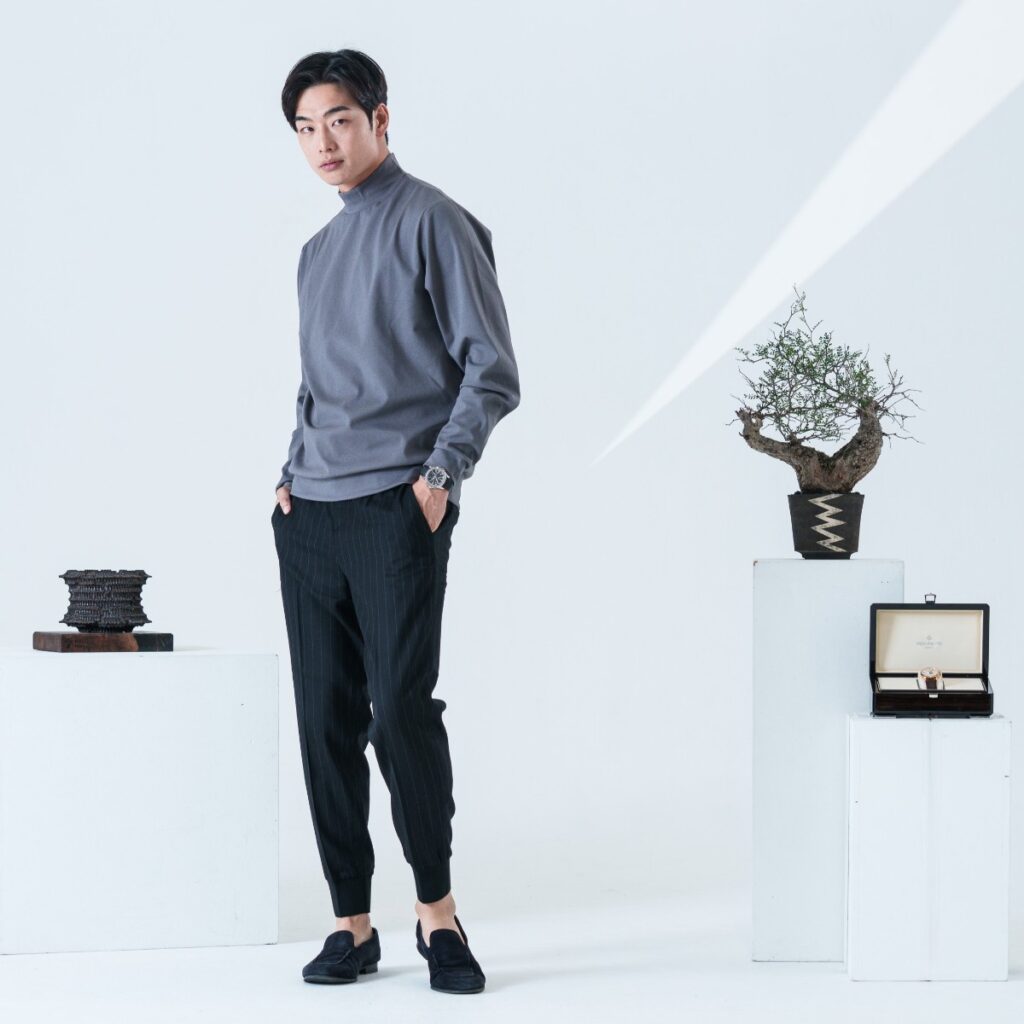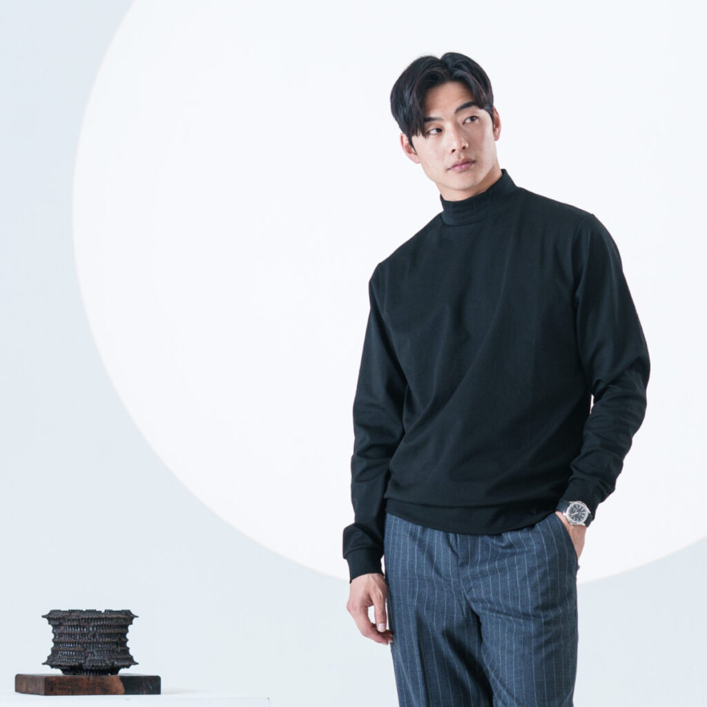ラグジュアリーで洗練された首元を演出する大人のハイネックカットソー。