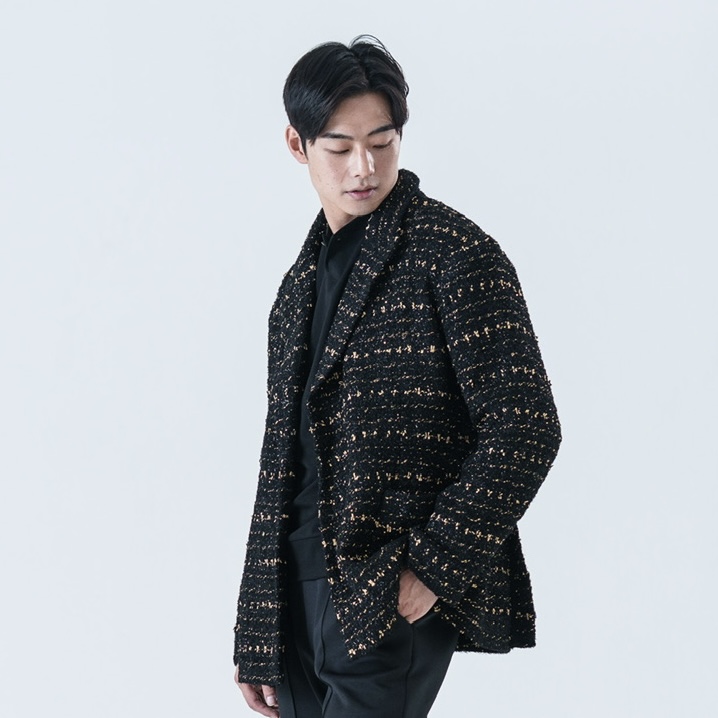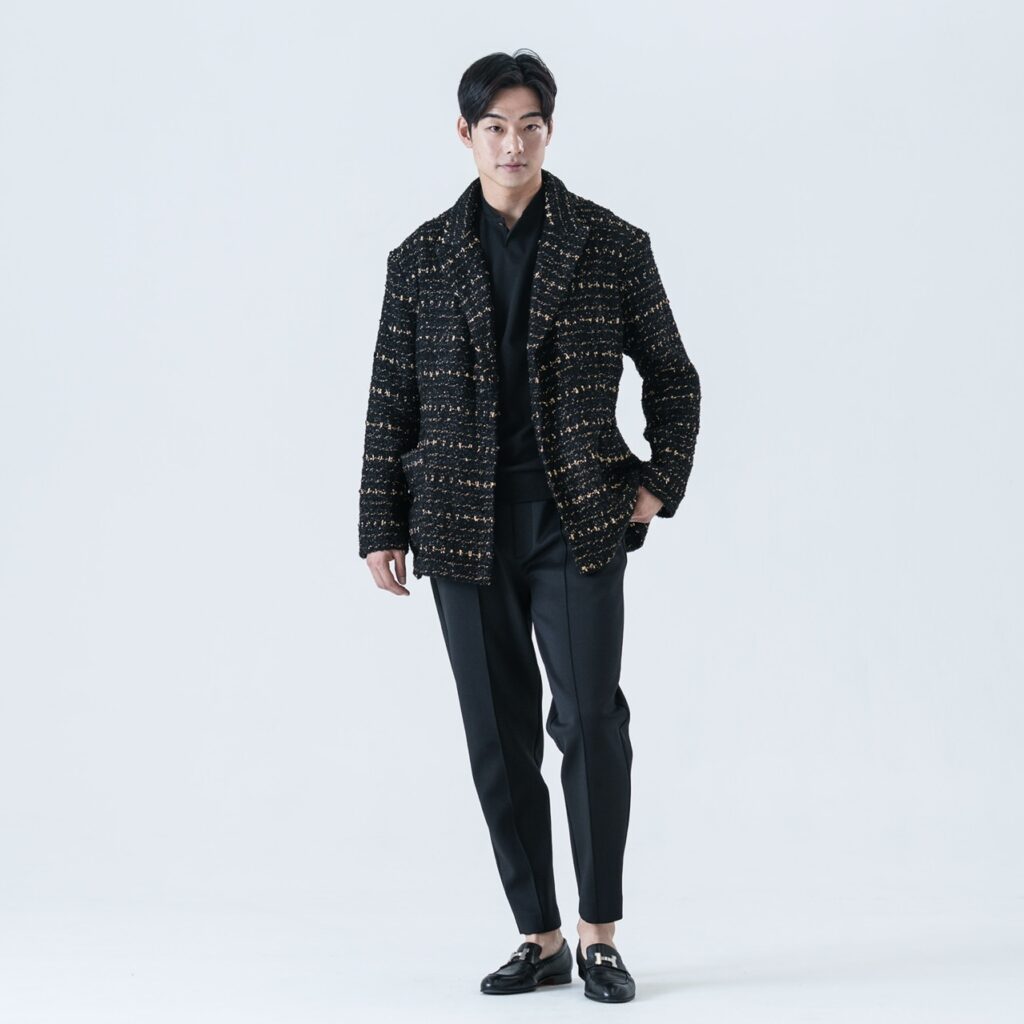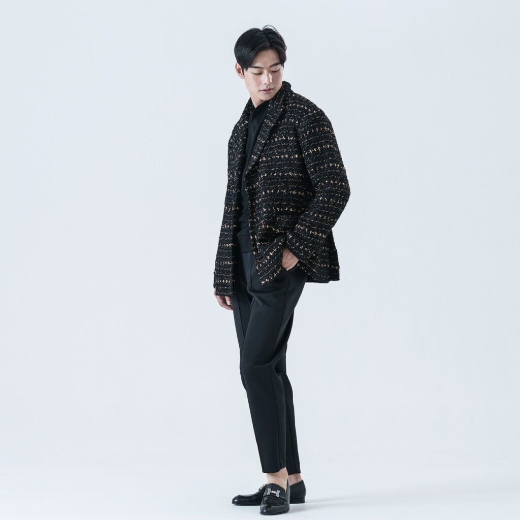 某最高級メゾンブランドでも使用されている最高級ツイードを使用したスッキリとしながら上質な雰囲気を纏うシルエットのラグジュアリージャケット。