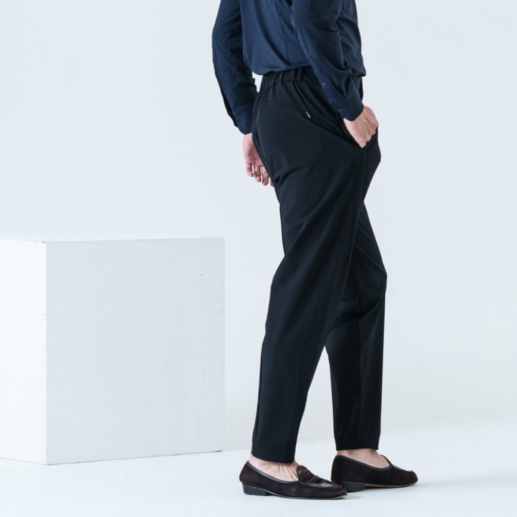 ナイロン素材で程良いストレッチ性と程良い生地の厚み感があり、どんなシーンでもストレス無く着用していただける